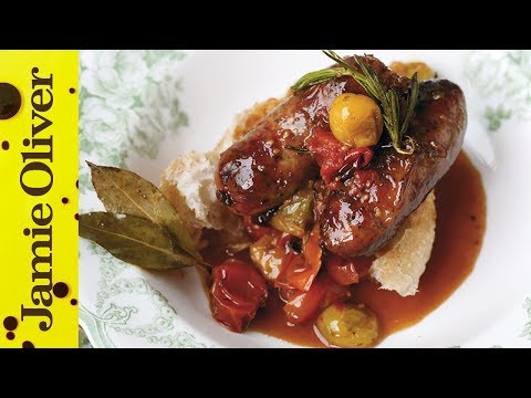 Oven Baked Sausage Ragu | Jamie Oliver - Sausage Tray Bake Recipe Jamie Oliver - Jamie serves up a delicious and smart ragu recipe using sausages and whole tomatoes in just one dish. A great treat for the chilly Autumn evenings. For another ...